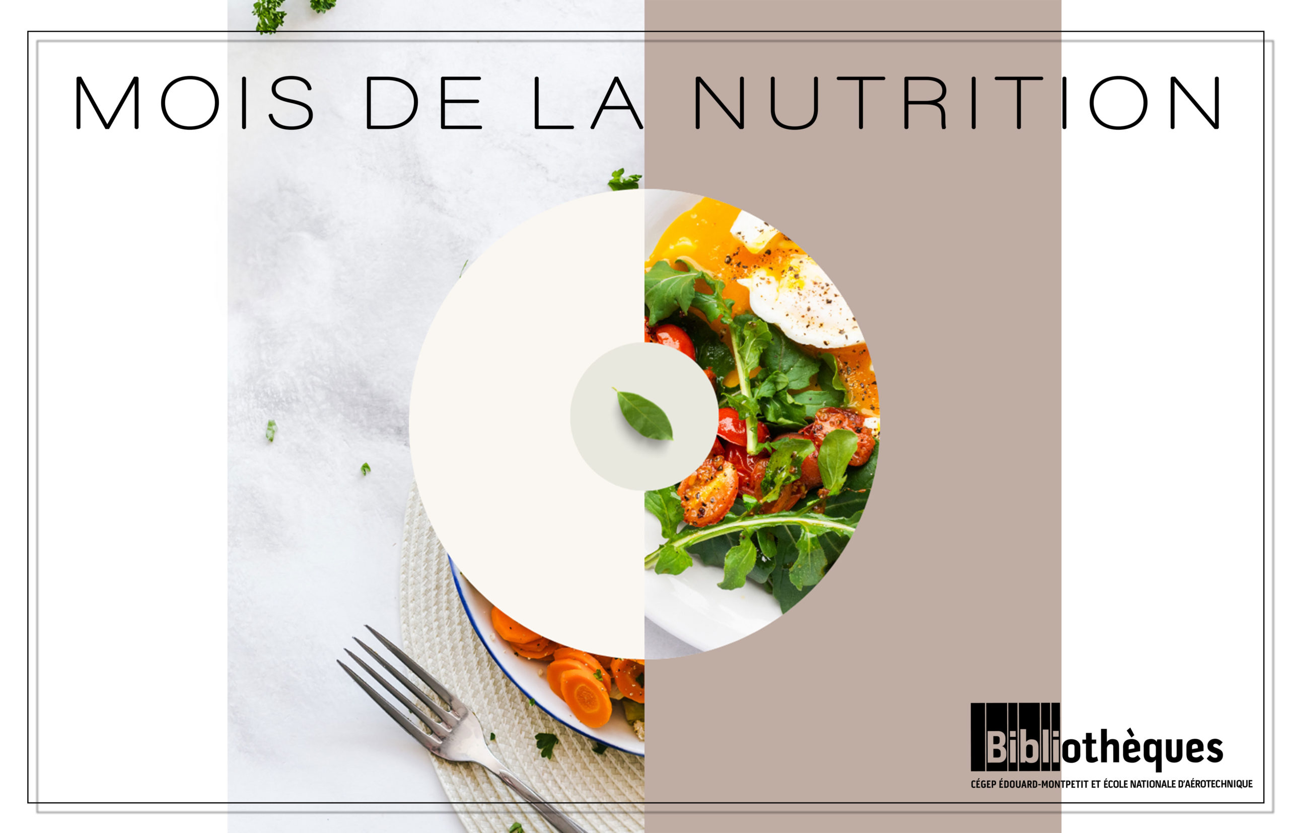 En ce mois de la nutrition, les bibliothèques vous proposent une exposition alléchante et instructive. Venez parfaire vos connaissances sur cette thématique tout en vous inspirant pour cuisiner sainement. Vous trouverez des listes de documents que nous vous suggérons et que nous avons mis en exposition (Cégep et ÉNA), ainsi qu’une liste de livres numériques disponibles sur Pretnumerique.ca.