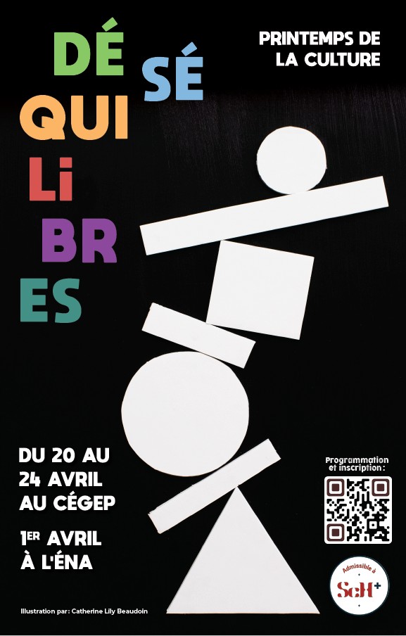 C’est du 20 au 24 avril prochain que se dérouleront les activités entourant le Printemps de la culture, dont le thème cette année est Déséquilibres : À en croire la rumeur du temps, ils seraient nombreux les déséquilibres. Tellement qu’on dirait qu’il n’y a que ça. Des écarts, des fossés, des gouffres: il semble, comme le veut l’expression, que tout va mal tout le temps. Sinon, comment expliquer, par ailleurs, notre aspiration si forte à toujours rechercher l’équilibre? Quand ça n’est pas carrément une injonction. À dénoncer, à soigner ou à célébrer, à embrasser, tous ces déséquilibres n’entrainent-ils que la chute ou n’inclinent-ils pas du même coup à entrer dans la danse? Sans déséquilibre, que respire le mouvement? comment nous poussent et s’ouvrent des ailes? où s’amorce le changement?
